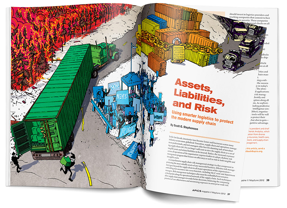 Illustrations for APICS Magazine article about accounting for unplanned complications in the modern supply chain.