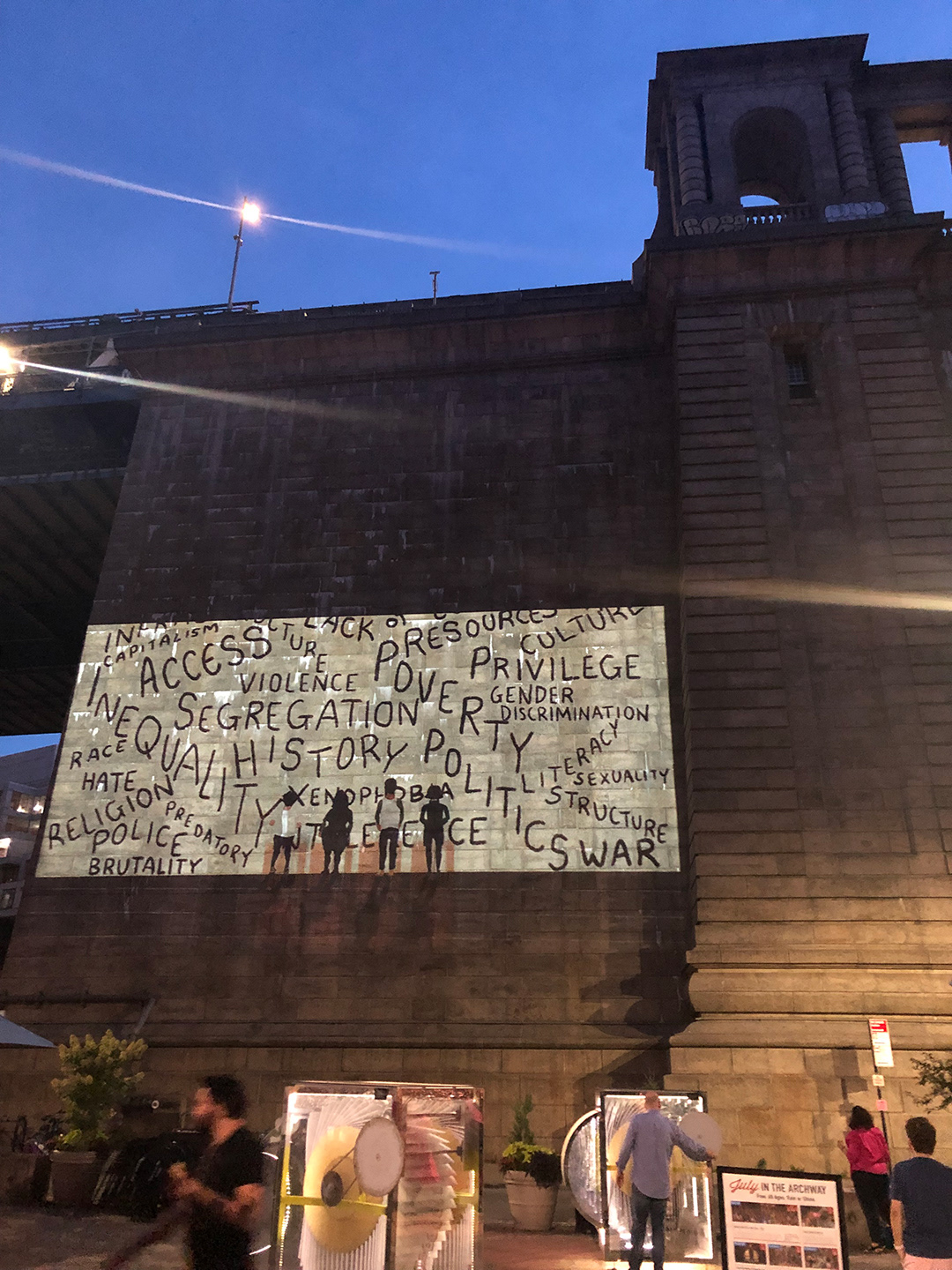 The film was projected onto the Manhattan Bridge on July 4th, 2019 as part of LightYear Film Festival